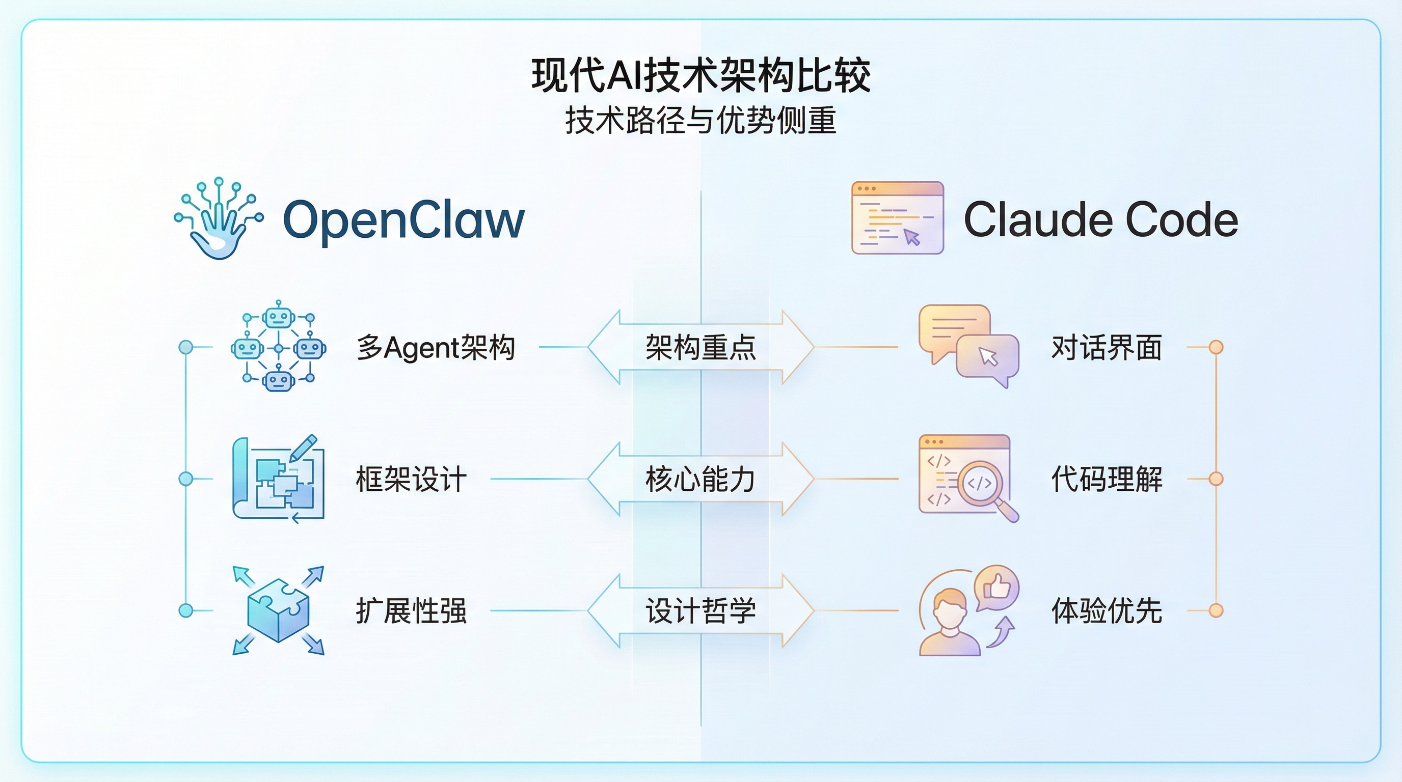 - 组合优势:Claude Code分析代码 → OpenClaw执行自动化流程